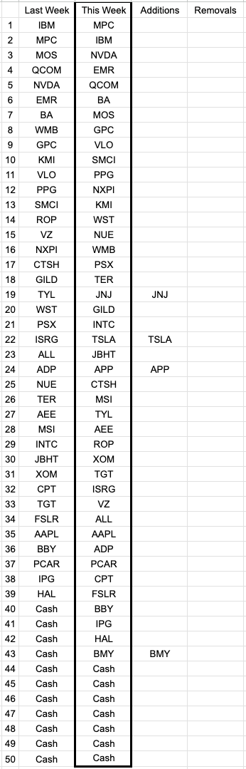 Addition : JNJ TSLA APP BMYHave a great week, everyone. As always, if there are big moves intra-week I will post updates.