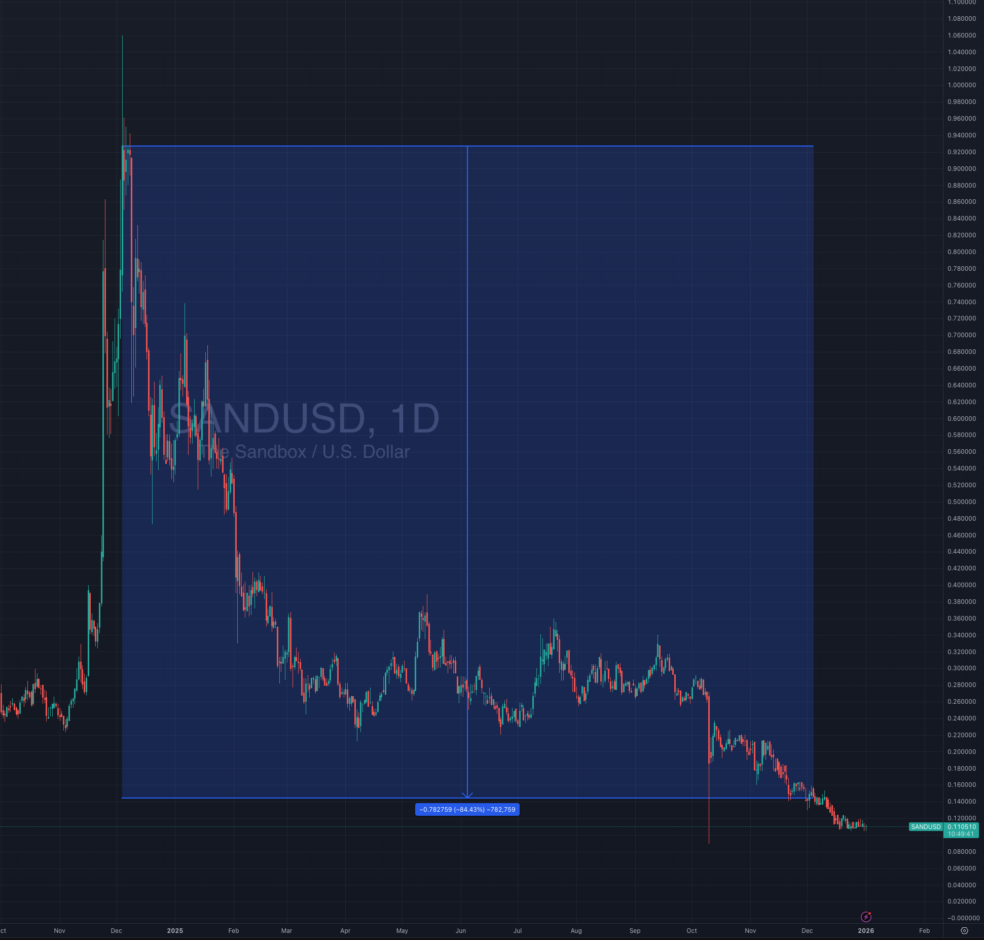 From its peak on 4th Dec 2024 to 4th December 2025 it is down 84% to today 88%.