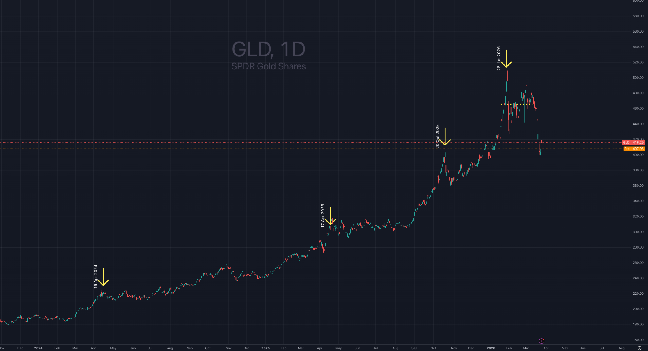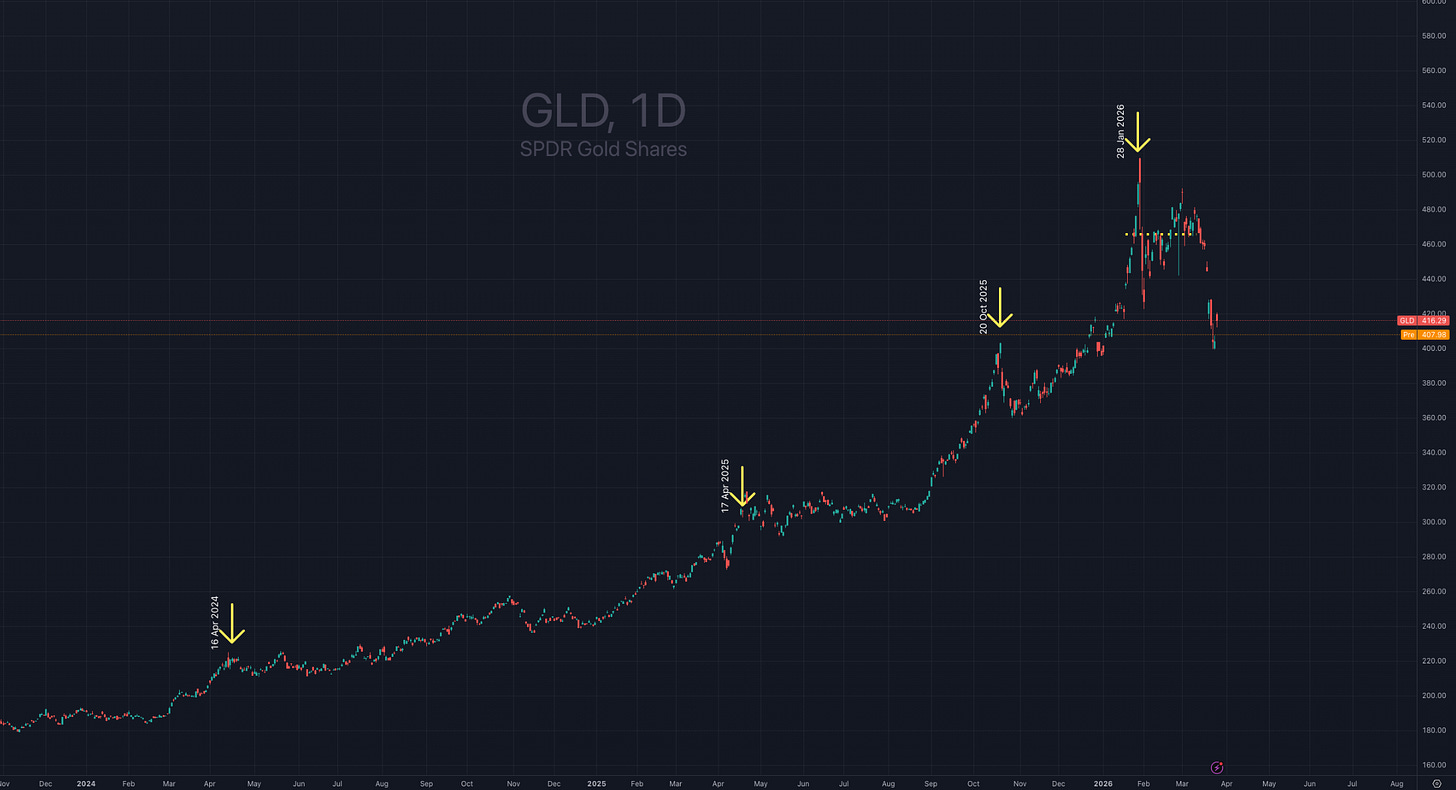 Changing the subject slightly to gold but the above is a very important factor for gold. I highlighted all the way through 2025 that peaks in GLD price came on peaks in GVZ, which of course is the opposite to a SPY/VIX relationship.
