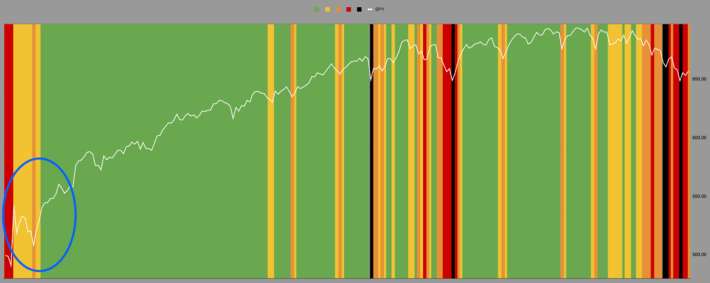 Then while price was above trend when price fell volatility fell which meant they would increase their position in a falling asset, again counter to normal SPY/VIX that most people think about.