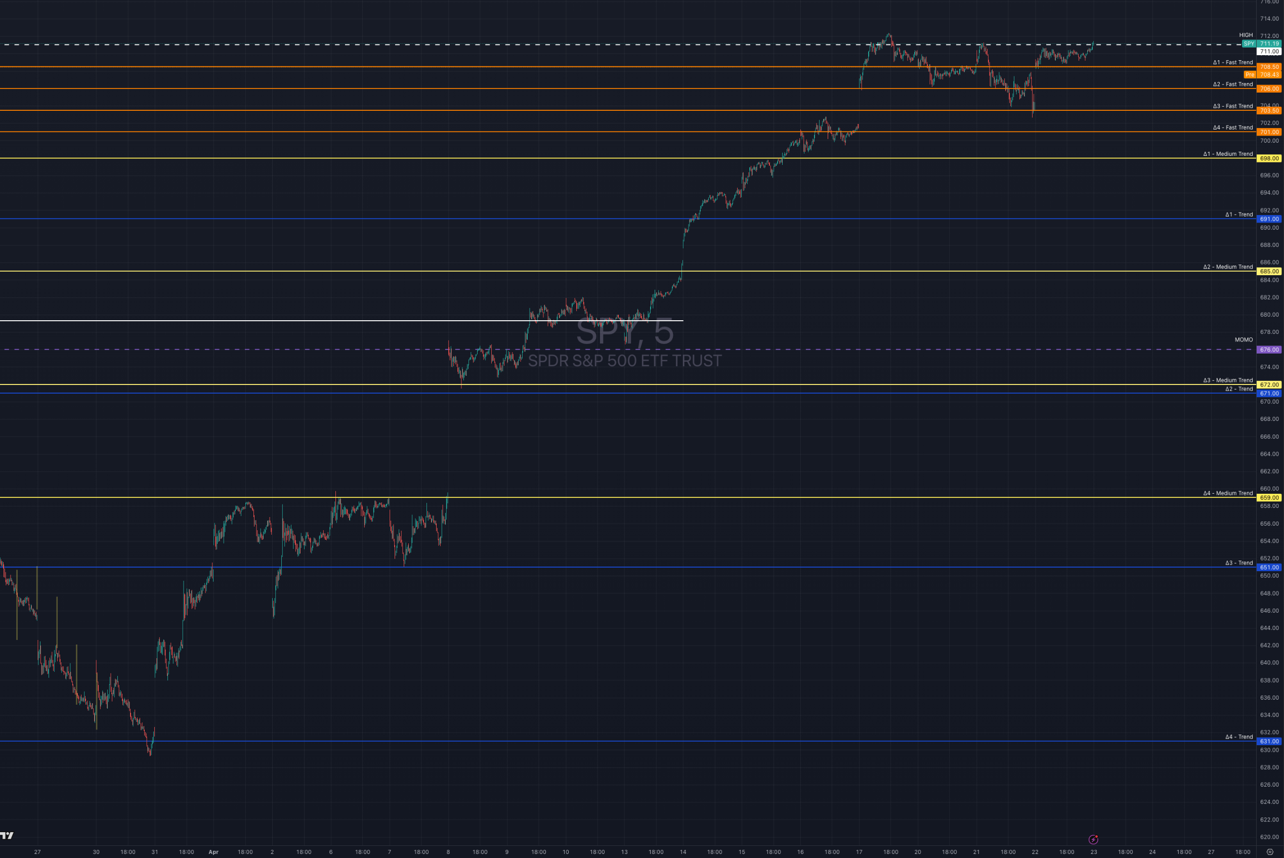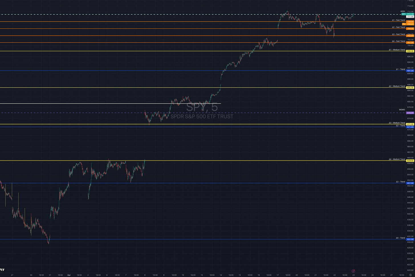 People who are complex with their words are often simple with their numbers. Do not listen to wordsmiths in a numbers game.All the levels I “use” calculated today and put on a chart. Reality is I only use ∆2 in blue which is TREND that I refer to always and forever.