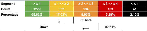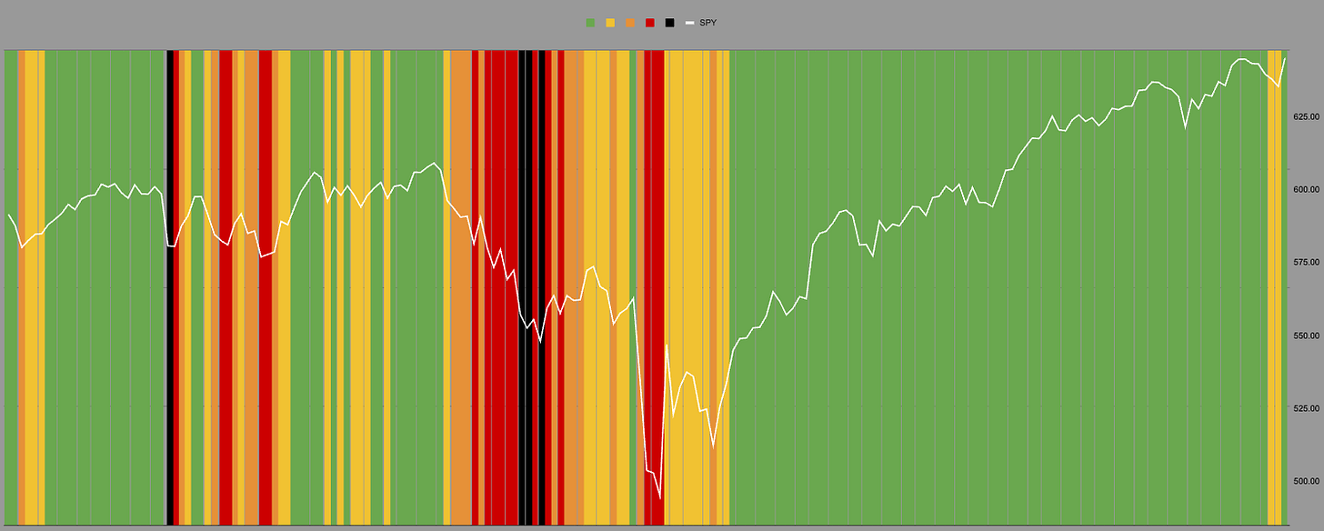 We remain in the green zone where SPX spends 65% of its trading time. This zone has a narrow but positively skewed distribution.