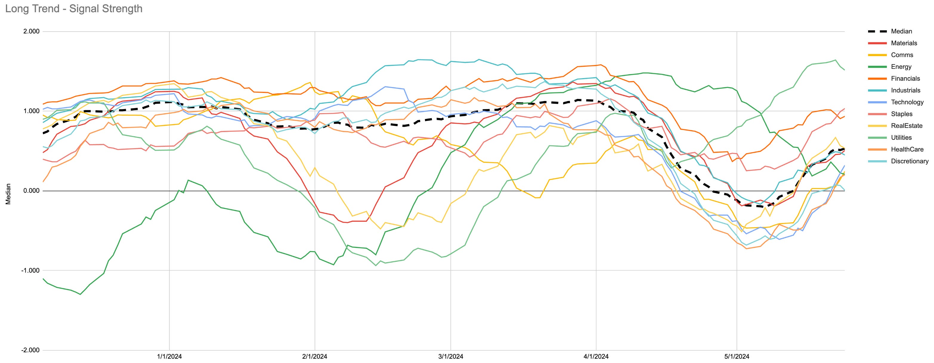 Behind this fog of war, I construct a portfolio of the 50 stocks in the SP500 with high and rising signal strength. Free of any priors or bias I don’t care if Twitter says we are going into recession and my system is piling into high beta growth stocks. I have a system to get us out if we are wrong. It’s a game of percentages. It’s boring and often there is nothing to write about, but it beats trying to trade using stories that we tell each other.